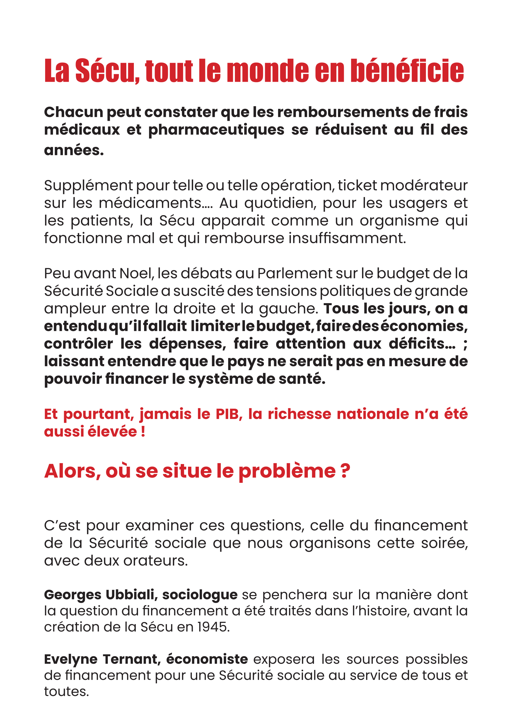 Vous êtes ici : Accueil Actualités Actualité culturelle et militante QUEL FINANCEMENT POUR LA SÉCURITÉ SOCIALE ? Réunion publique, mardi 27 janvier 2026 20 h - Salle Proudhon 16 janvier 2026 Actualités QUEL FINANCEMENT POUR LA SÉCURITÉ SOCIALE ? Réunion publique, mardi 27 janvier 2026 20 h - Salle Proudhon Imprimer l'article